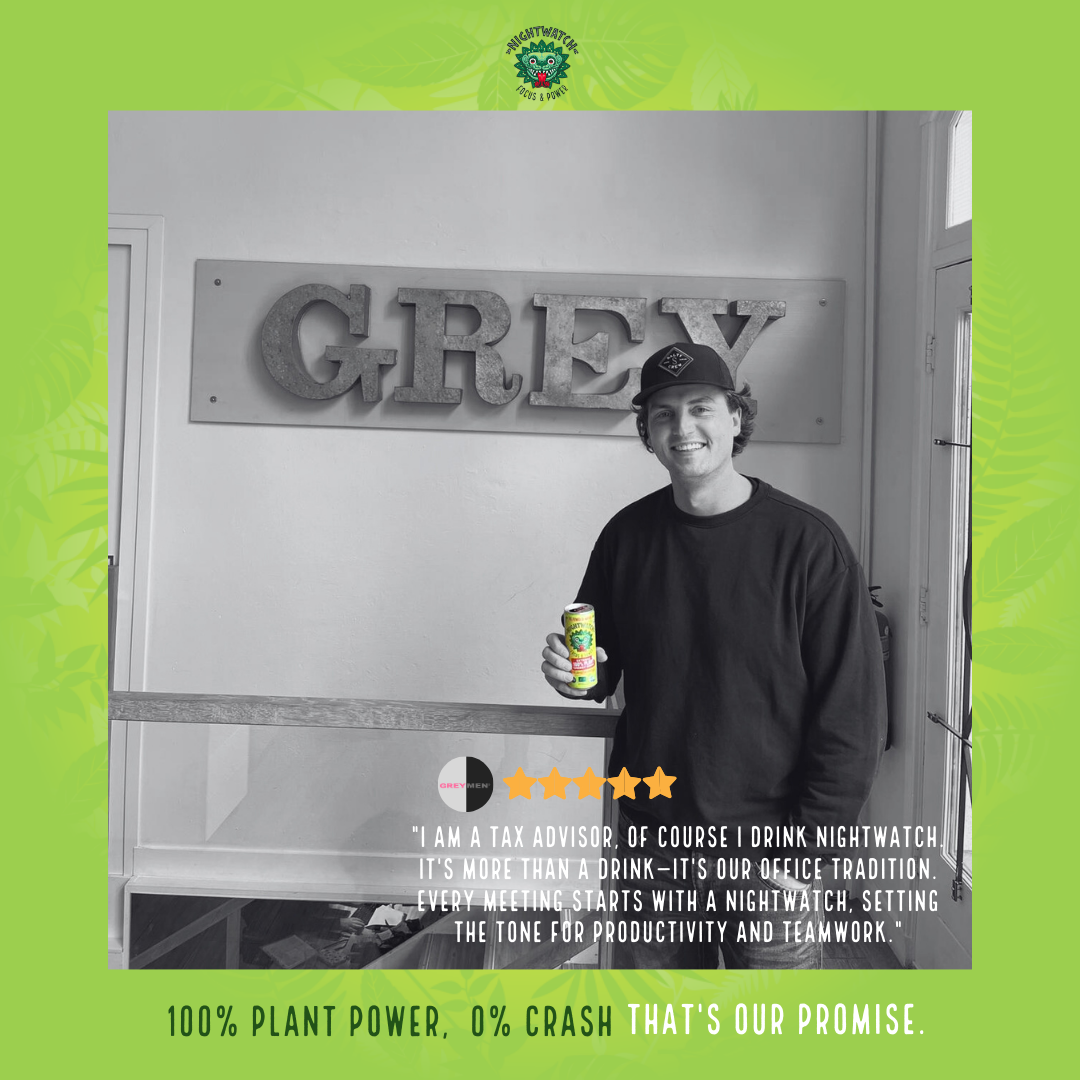 Nightwatch, the new generation extreme energy drink, 100% plant based for focus & power. The choice of a new conscious generation.