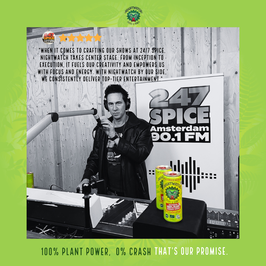 Nightwatch, the new generation extreme energy drink, 100% plant based for focus & power. The choice of a new conscious generation.